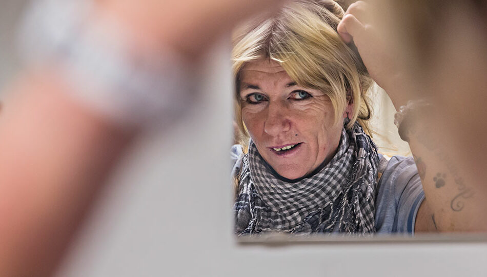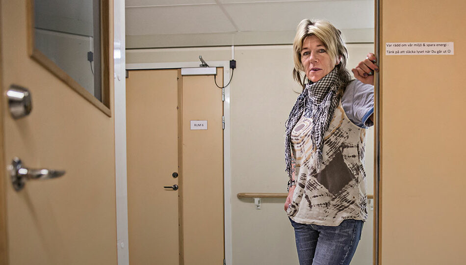 Lena Freij svarar i telefon att hon ligger till sängs med lunginflammation. Hon går på en penicillinkur och känner sig litet febrig. Hennes röst är hes. Vi tar oss till henne utan problem, eftersom hon ligger på härbärget Grimman, Maria Prästgårdsgatan, där alla gäster eller klienter är hemlösa även om de inte har lunginflammation.