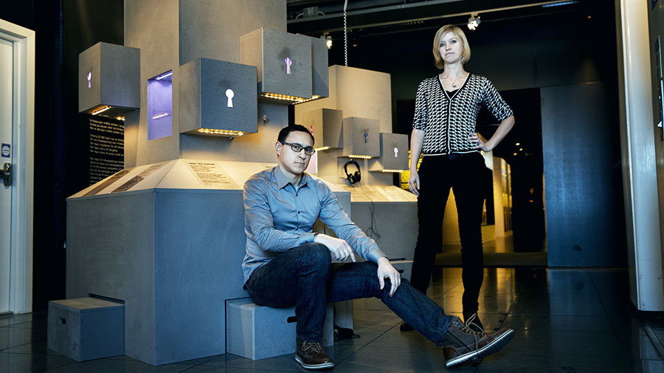 Samtidigt som intervjun pågår i rummet bredvid kommer en skolklass med barn i mellanstadieåldern och passerar genom ”Andra sidan murarna”-området. Boxarna med titthål i form av nyckelhål lockar. En flicka sätter på sig ett par hörlurar och blir omgående uppslukad av en autentisk berättelse. Ellen Bodström ler stort när flera av flickans kamrater försöker få med sig henne därifrån. Det är nån tid som måste passas, men först när läraren kommer dit lyfter flickan av sig lurarna.