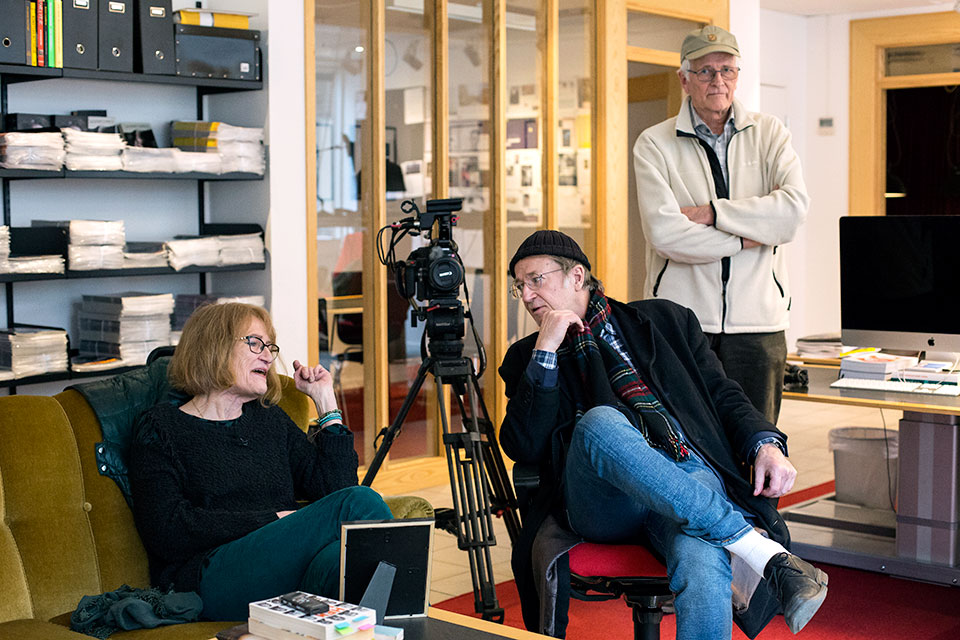 Den gången stod vi på Karlaplan och pratade, på gatstenen när exakt på den plats där hon brukade stå och sälja Situation Sthlm i slutet av nittiotalet när journalisten och dokumentärfilmaren Tom Alandh för första gången la märke till henne i gatubilden. Det har blivit tre dokumentärfilmer om Pia Sjögren sedan dess, den senaste filmen, Leva livet, visades i SVT 2011. Men filmandet har fortsatt. Och det är därför Tom Alandh och Pia Sjögren kommer gående arm i arm uppför Timmermansgatan den här dagen – jag ska intervjua henne och Tom Alandh och hans team ska filma tilldragelsen och addera den till det redan digra antal timmar film som under de senaste åtta åren ackumulerats i klipparen Heleen Rebels dator i klipprummet på SVT. Nästa höst, i september eller oktober 2020, kommer nämligen den fjärde filmen om Pia Sjögren.