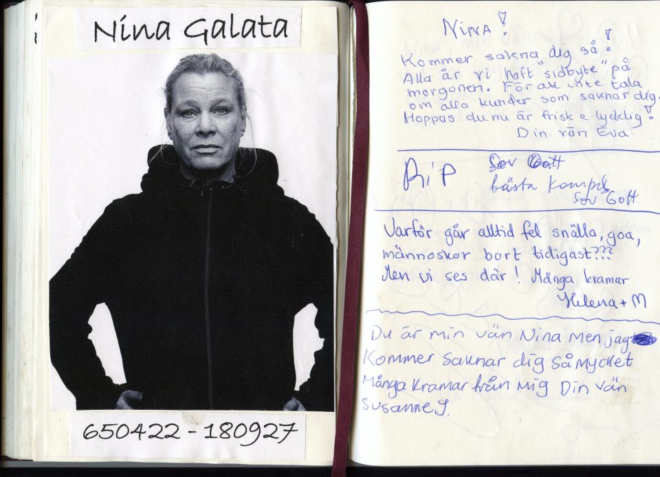 Fem skrivböcker. A5-format. Vita sidor, några av dem radade, andra inte. Olika pennor har använts genom åren för att skriva i den – blått bäck, svart, rött, en och annan tuschpenna med tunn spets. Och 109 bilder på avlidna säljare av Situation Sthlm sitter inklistrade på vänstersidor i de olika kondoleansböckerna, till den äldsta införda bilden är dödsdagen daterad 9 februari 2006.