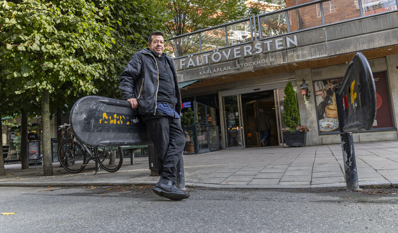 På dagen kommer många som är lite äldre, för att handla på Fältöversten. De gillar att snacka. Det händer också att jag träffar personer som jag kände förr. Jag växte upp här i närheten, bodde bland annat på Birger Jarlsgatan. Det var jag, min brorsa och mamma. Min pappa var död.