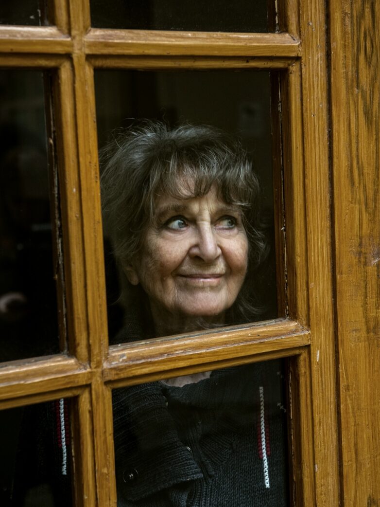 En knapp halvminut senare kommer den utan jämförelse yngsta åttioåttaåring – hon fyller 89 år på nyårsafton – jag träffat, med synnerligen energisk stegisättning och framåtlutat kroppsspråk, runt hörnet och fram genom valvet mot porten. Ler. Rycker på axlarna. Öppnar.