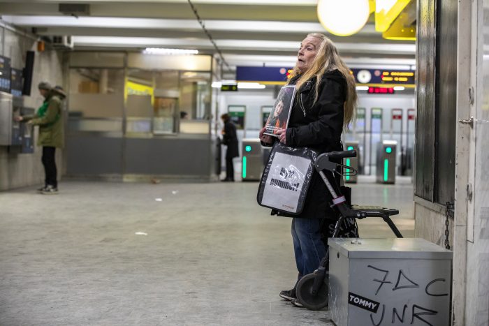 Fortfarande – och så var det även när de delade på försäljningsplatsen – är det Eva Kullmer som tar det tidiga morgonpasset. Hon är oftast där redan klockan sex på morgonen för att stå där när den första vågen pendlare kommer uppför rulltrapporna eller in från Torkel Knutsonsgatan. För hon vaknar tidigt. Har svårt att sova. Hon har dragits med astma i många år, för några år sedan konstaterade läkarna att hon har Kol. Och för ett drygt år sedan insjuknade hon hastigt i en allvarlig lunginfektion, forslades i ilfart till sjukhus – i ambulansen uppmättes 41,9 graders febertemperatur – och sövdes omedelbart ner och placerades i respirator. Efter sjutton dagar vaknade hon. Men det som fortfarande stör hennes nattsömn – där av de tidiga morgnarna – är vetskapen om att detta kan, och enligt vad läkarna sagt till henne, förmodligen kommer att hända igen.