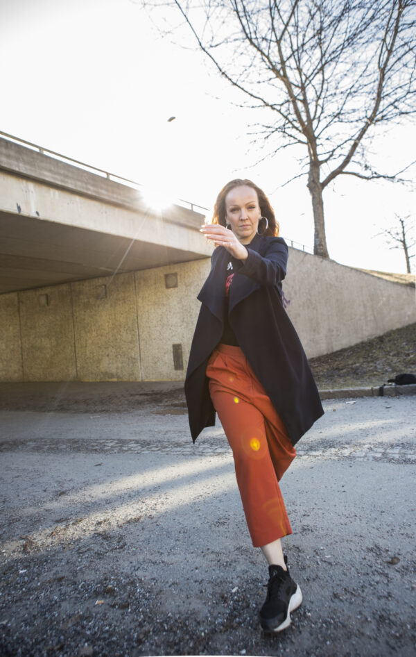 – Jag har med fem dansare i den här föreställningen som inte brukar jobba ihop, och alla har personliga upplevelser av våld och får berätta sina historier. Vi gör det genom dans, men vi har också musik, jag har skrivit lite poesi och spoken-word – jag gör sånt jag inte är van vid att göra, koreografi är ju mitt första språk.