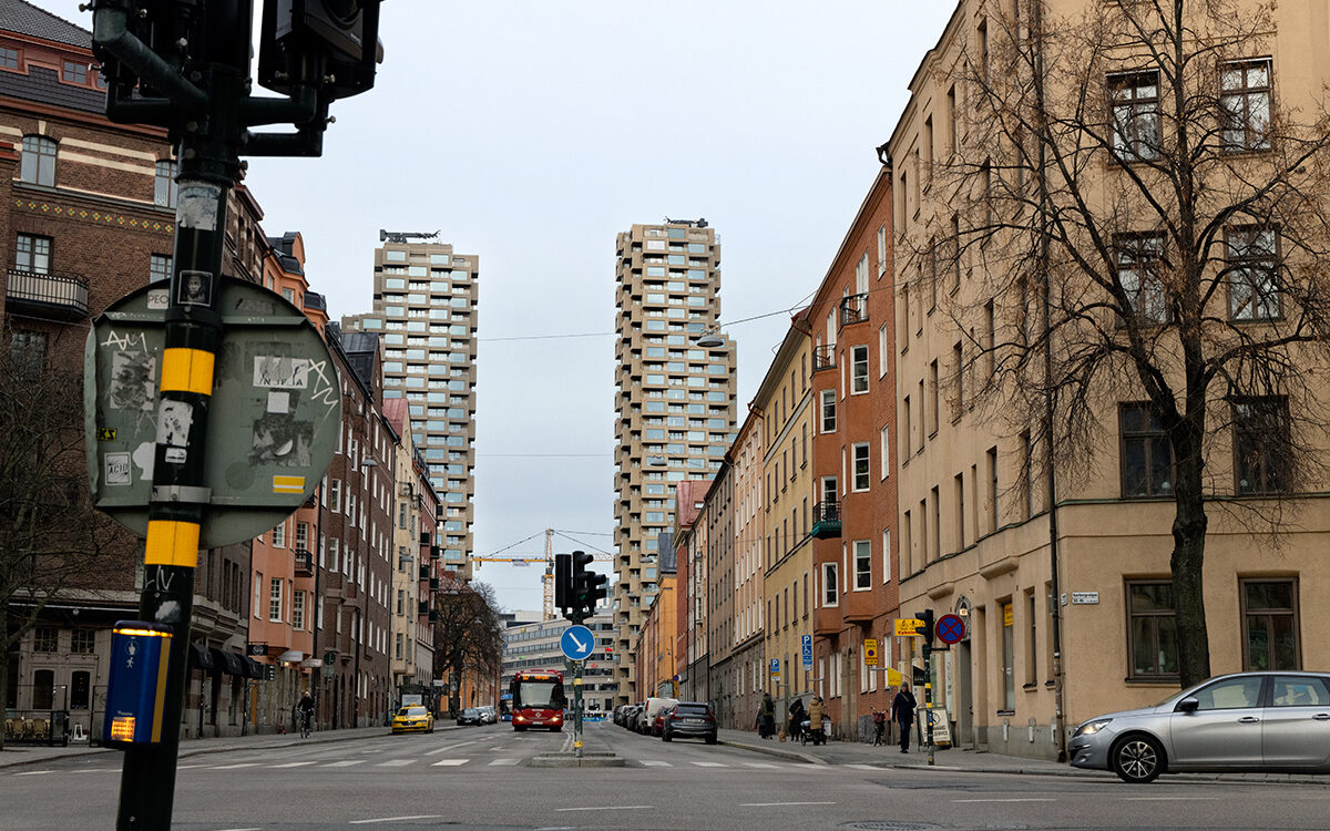 När man står vid basen av Norra tornen på Torsplan ser de liksom mycket anspråkslösare ut än vad de gör när man ser dem på långt håll. Att titta upp på dem stående precis invid fasaden ger intrycket av att ett lego är på väg att rasa ner över en. Ungefär.