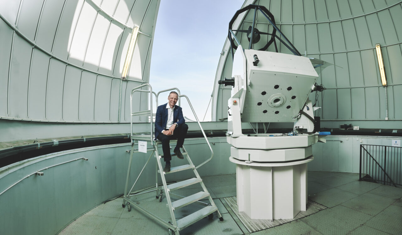 Vi är egentligen klara. Det återstår åtta minuter av avsatt intervjutid. Fotograf Joel Nilsson ska så här avslutningsvis bara ta några kompletterande bilder framför fönstret i Christer Fuglesangs kontor efter den mer riggade fotografering som just varit, några våningar upp i kupolen vid AlbaNova-teleskopet som institutionen för astronomi driver. När Christer Fuglesang sätter nyckeln i dörren till sitt kontor frågar fotografen ifall det han i förbigående hört stämmer, att man kan drabbas av en viss existentiell ångest efter att ha varit uppe i rymden, att man får ett annat perspektiv på tillvaron och livet och evigheten och alltings beskaffenhet när man sett jorden som en liten oskyddad, ensam planet bland alla andra stjärnor och planeter i det oändliga universum.