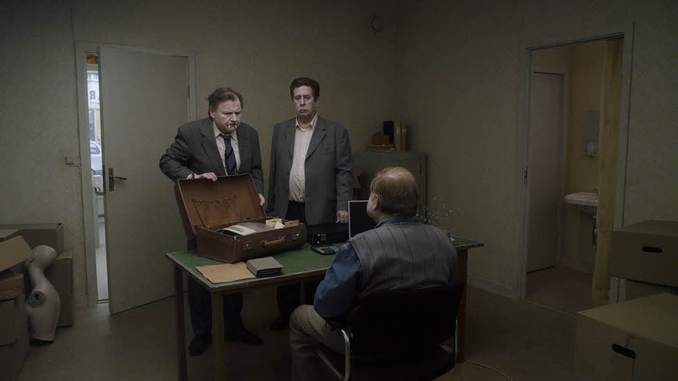 Det kan vid en första anblick te sig som mer av samma vara, att vi har sett det förut. Visst känner vi igen mycket – den låsta kameran, tablåerna, de vitsminkade ansiktena, de kutiga ryggarna och den dämpade färgskalan. Men i ”En duva satt på en gren och funderade över tillvaron” bryter han mot sina tidigare regler. Det låsta är inte lika låst och egentligen saknas en regelrätt berättelse, även om vi får följa två försäljare av skämtartiklar som en sorts röd tråd genom filmen.