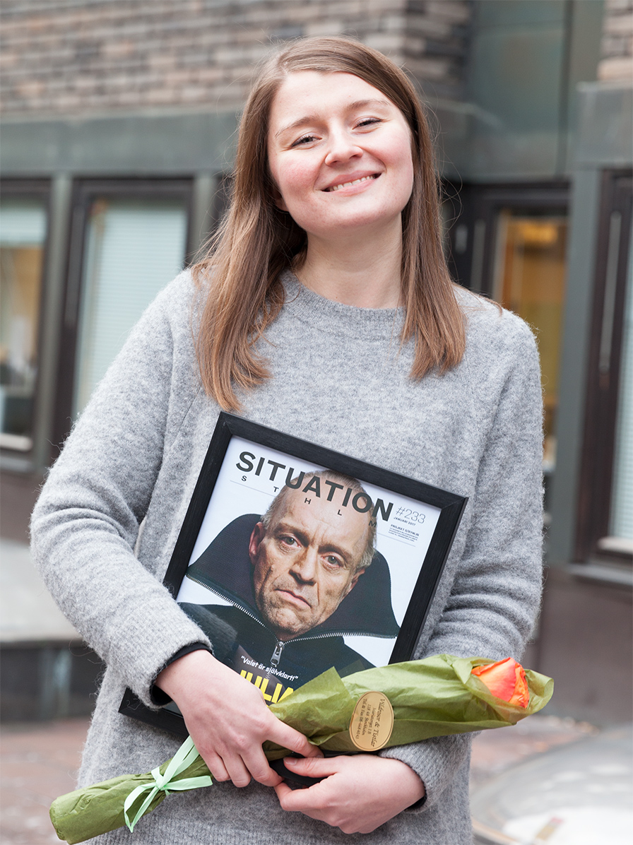 Efter intervjuer och studiebesök hos Situation Sthlms säljare, skapade studenterna från årskurs tre på Beckmans Modeprogram tolv plagg som på olika sätt mötte säljarnas behov. Julia Andersens förslag röstades senare fram som vinnare.